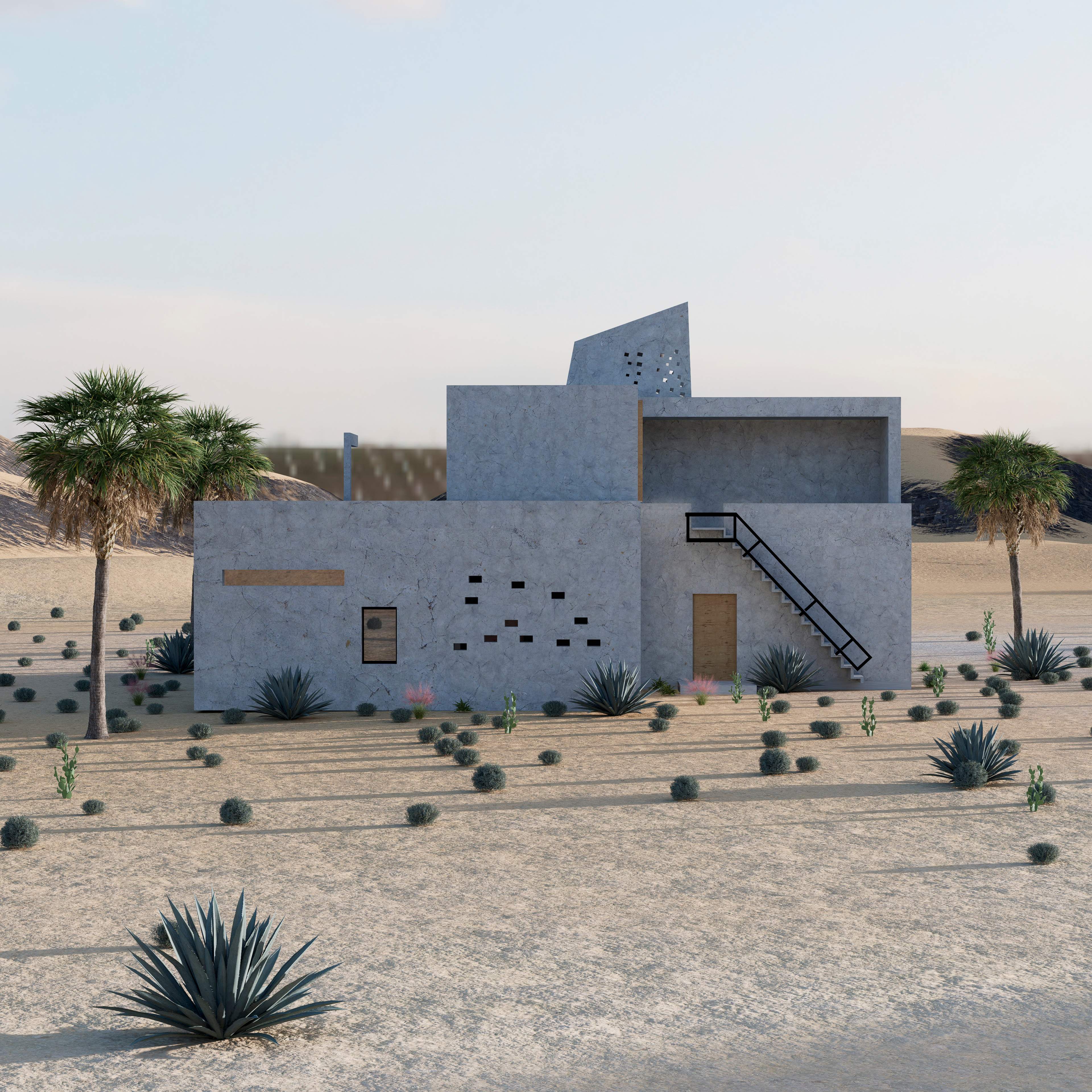 villa anbar's regulatory mechanisms consist of a strict allocation of space to each sex. this reimagination of villa anbar seeks to re-re-envision it as a place of protection and power in the midst of an arid desert.